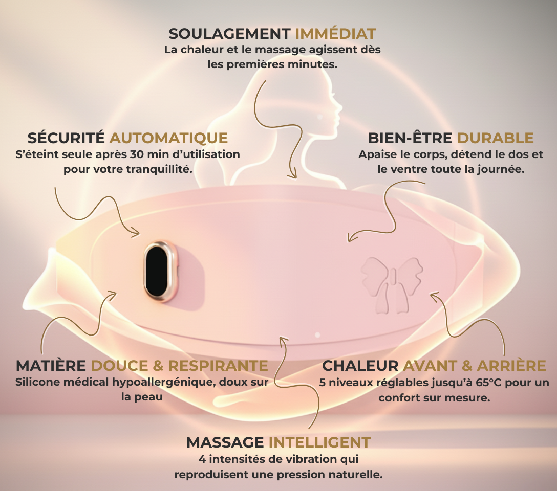 Dites adieu aux crampes et bonjour à un cycle plus doux. Chaque minute d’utilisation vous rapproche d’un vrai sentiment de soulagement et de bien-être.